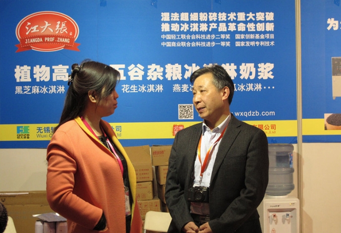 這種冰激凌是由我公司研發的濕法超細精磨機制成,它能將果蔬谷物皮渣纖維百分百全利用,最快只需要50秒,