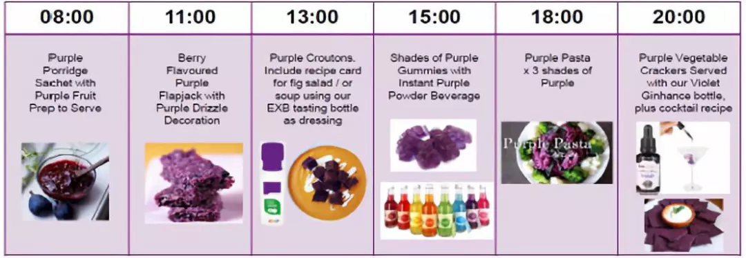 2018年流行什么顏色?紫色是今年的流行趨勢之一,果蔬汁色彩趨勢也將圍繞紫色帶給消費者更多的健康。試想紫色的一天,從早上到中午到下午茶,一直到晚上,都可以食用一系列的紫色食品和飲料,來給我們的生活添加更多的色彩與健康。