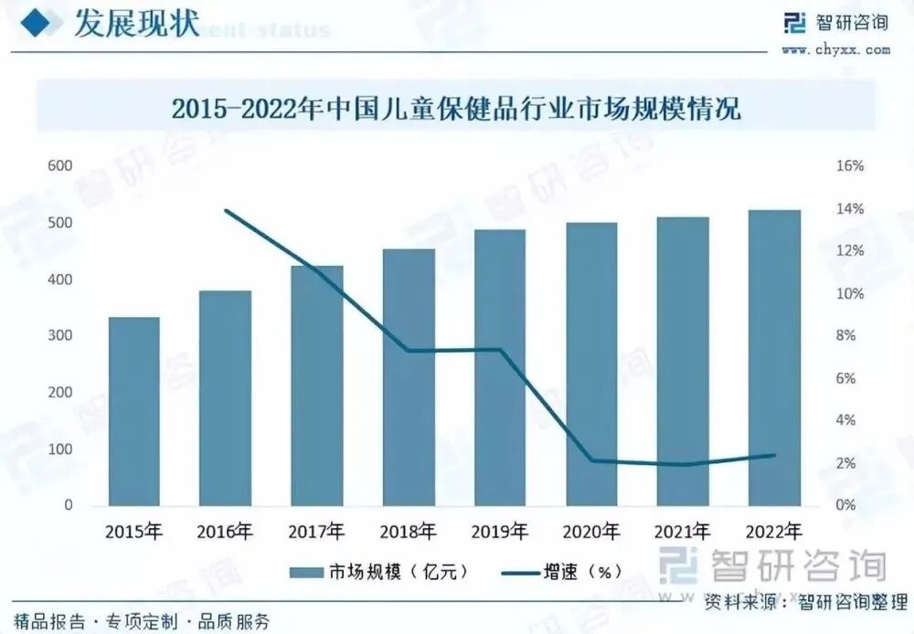 內容概況:隨著我國經濟的快速發展,居民生活水平的提升,人們對于自身健康也愈發重視,家長對孩子的營養及保健消費支出也不斷增長。同時,在我國二胎、三胎政策的相繼開發下,我國兒童人口不斷增長,為兒童保健食品行業的發展帶來了龐大的需求市場,推動了我國兒童保健食品行業的發展。據資料顯示,2022年我國兒童保健食品行業市場規模為523.7億元,同比增長2.4%。